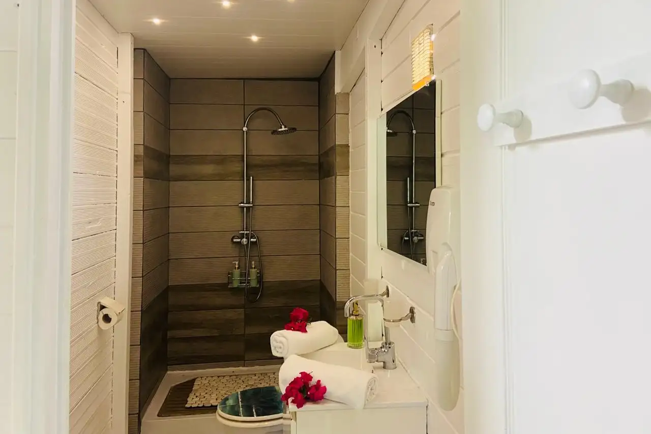 Vous apprécierez également sa petite terrasse intime et sa belle salle de bain avec douche à l’italienne.