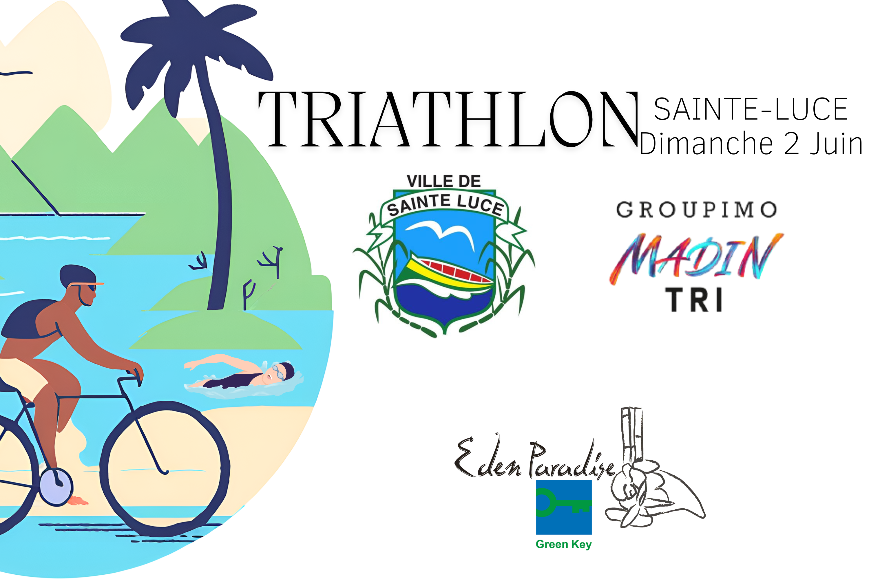 Nous sommes ravis de vous annoncer un événement sportif exceptionnel qui se déroulera le dimanche 2 juin à Sainte-Luce : la grande compétition de Triathlon organisée par l’association MadinTri, en partenariat avec Eden Paradise. Ce rendez-vous incontournable promet de vous offrir une journée riche en émotions, en dépassement de soi et en convivialité.